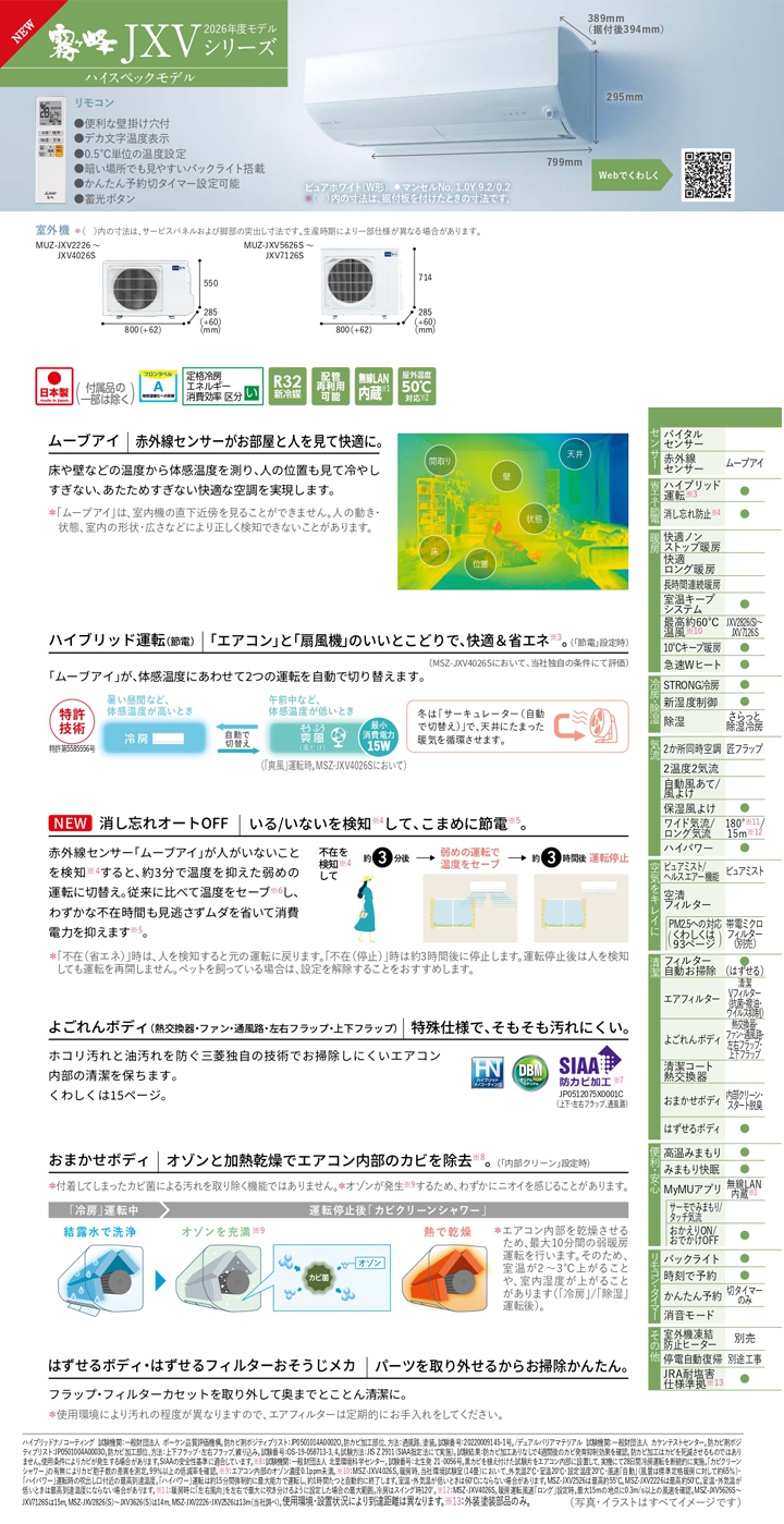 MSZ-JXV4026S-W 三菱電機 ルームエアコンのカタログ情報