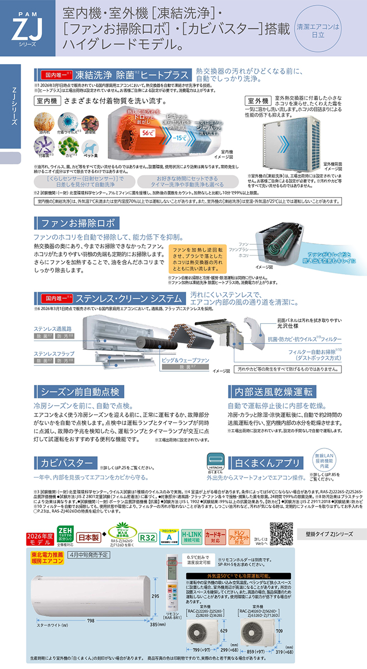 RAS-ZJ2226S-W 日立 ルームエアコンのカタログ情報